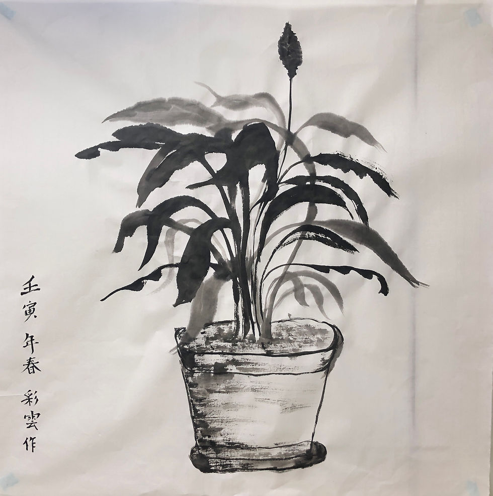 水墨相較起來或許是比較多人害怕的材料,因為紙張暈染的特性讓人感覺難以控制。很有趣的是它也是有很多「公式」的繪畫,皴法、樹枝、水紋、竹子、蘭花等等都有可以「背」的公式。但水墨其實也沒有那麼多包袱,透過示範分享水墨的墨色、乾濕特性,給大家題材,其餘讓大家藉由多多「觀察」將對象物表現得活靈活現。